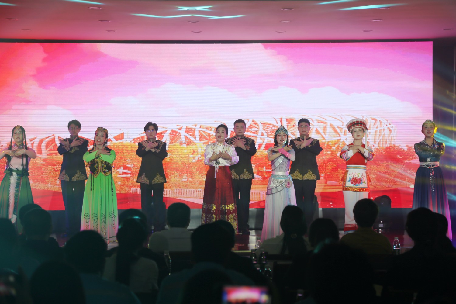 通過層層選拔,共有12個參賽作品進入最終決賽,比賽現(xiàn)場既有獨具創(chuàng)新的情景劇演出、又有形式豐富的唱跳表演,既有深情款款的獨唱朗誦,又有氣勢磅礴的集體合唱,現(xiàn)場氛圍熱烈高漲。
