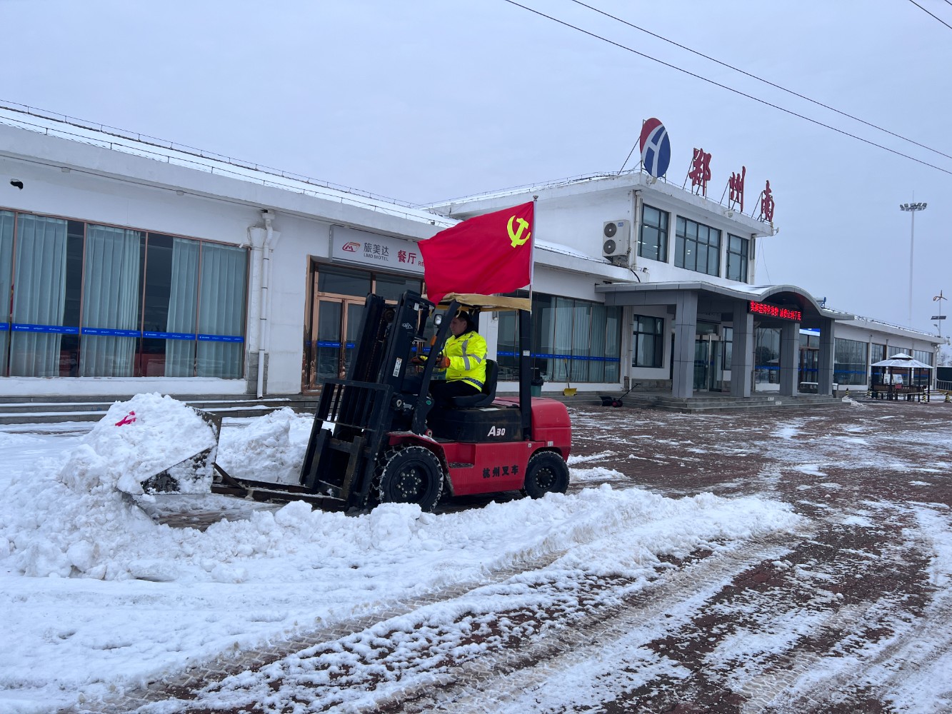 2月4日,根據(jù)天氣預(yù)警,河南進(jìn)入此輪降雪最強(qiáng)階段,多地有中到大雪,為切實(shí)做好服務(wù)區(qū)除雪保通、服務(wù)保障工作,充分發(fā)揮黨組織戰(zhàn)斗堡壘作用,直屬分公司黨委按照集團(tuán)及公司決策部署,組建6支黨員突擊隊(duì),頂風(fēng)冒雪、日夜兼程支援信陽(yáng)、南陽(yáng)、駐馬店、周口四地服務(wù)區(qū),他們保安全、保暢通、保服務(wù),他們亮身份、扛責(zé)任、顯擔(dān)當(dāng),以“四個(gè)強(qiáng)化”舉措讓黨旗在除雪保通服務(wù)工作一線高高飄揚(yáng)。