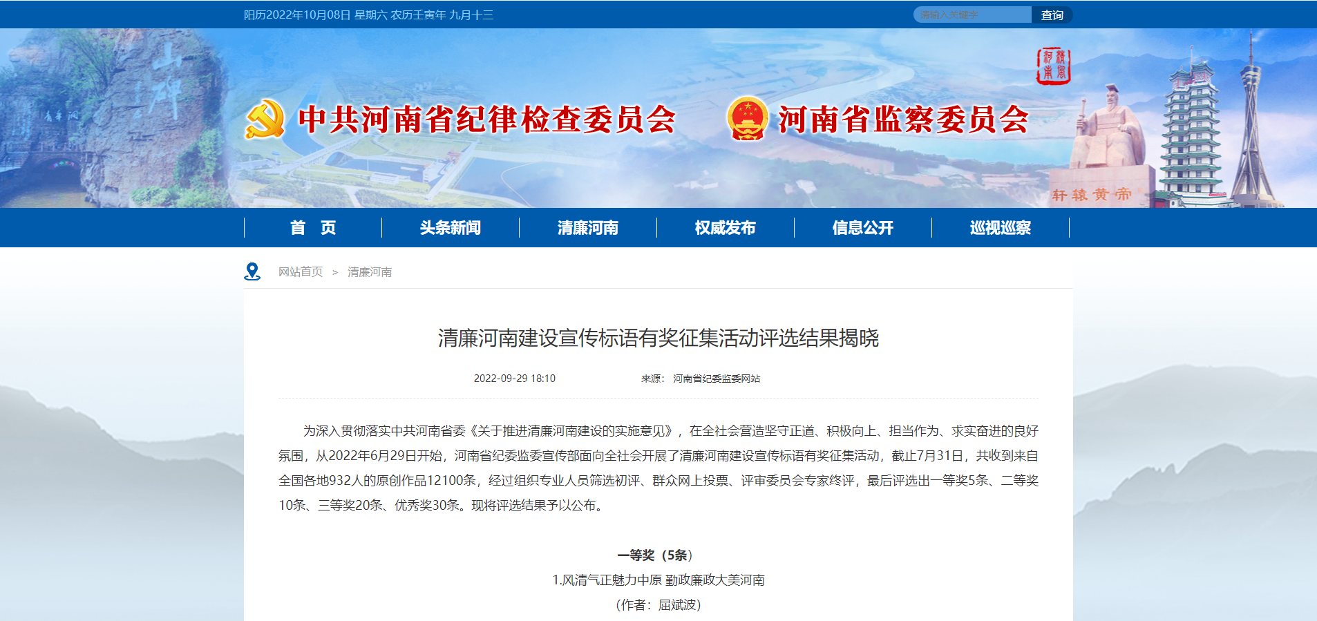 來源: 本站 發(fā)布時(shí)間: 2022-09-309月26日,省紀(jì)委監(jiān)委宣傳部面向全社會(huì)開展的清廉河南建設(shè)宣傳標(biāo)語征集活動(dòng)評(píng)選結(jié)果揭曉,公司報(bào)送作品喜獲一、二等獎(jiǎng)和優(yōu)秀獎(jiǎng)。
