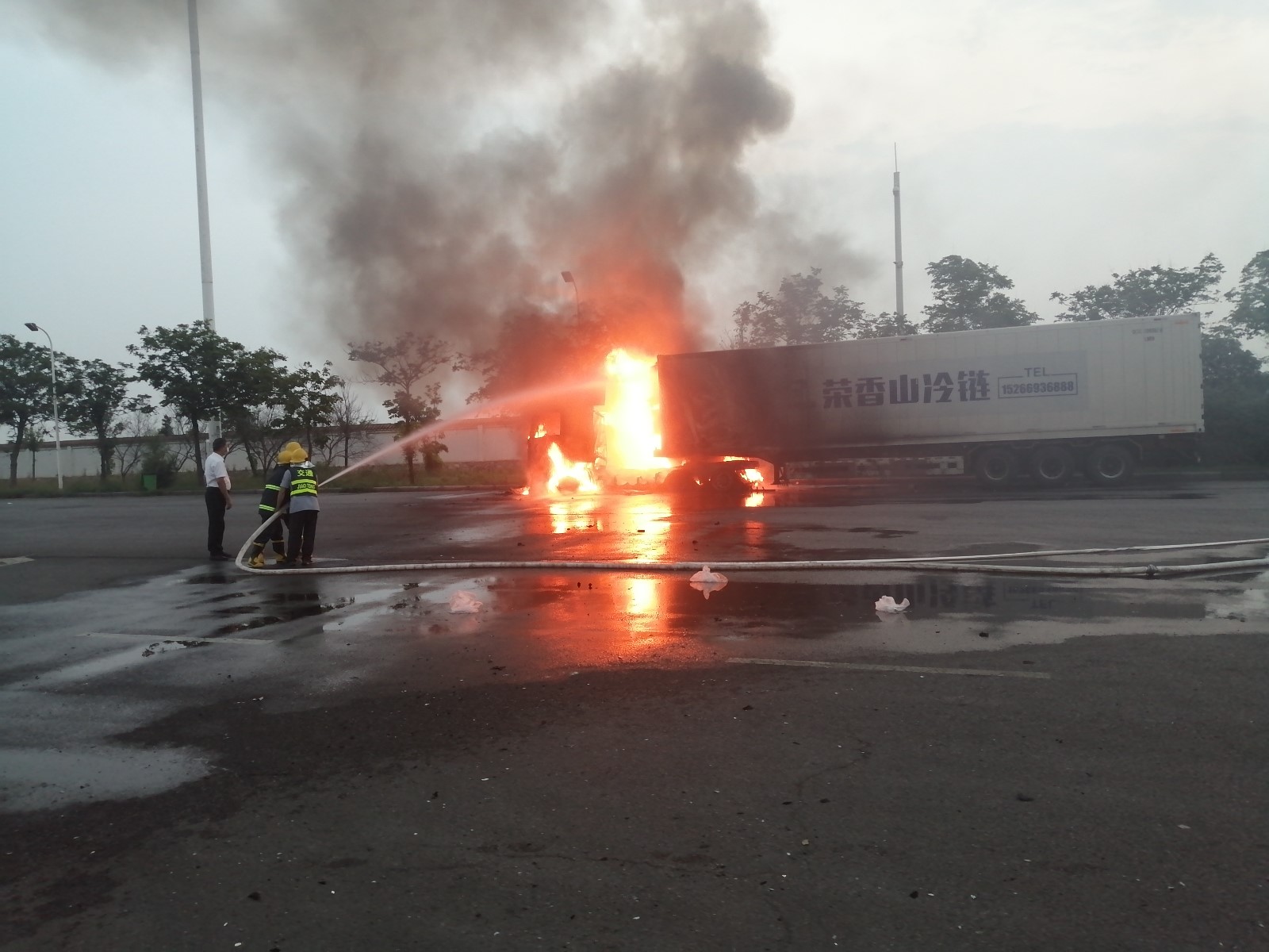 來源: 本站 發布時間: 2020-06-296月26日清晨4:40,鶴壁服務區交通疏導員劉慧軍巡查時,發現東區后廣場一輛貨車著火,立即向值班經理劉濤進行了匯報,服務區經理武紅軍得知情況后立即下達指令進行救火,副經理劉濤、王浩及公共服務部部長高志強立即組織人員按照消防演練預案進行搶險救火,一是疏導其他車輛離開…