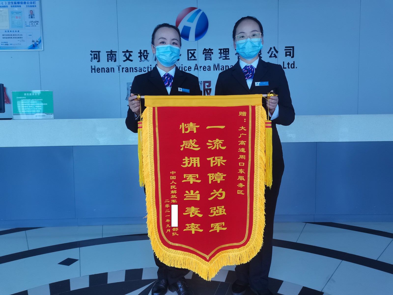 2021-10-13 作者:10月12日,周口東服務(wù)區(qū)收到福建省解放軍某部隊(duì)寄來(lái)的一面寫著“一流保障為強(qiáng)軍 情感擁軍當(dāng)表率”的錦旗,隨錦旗一同寄來(lái)的還有一封感謝信。原來(lái)在河南720暴雨災(zāi)害搶險(xiǎn)期間,解放軍某部隊(duì)馳援河南兩次途經(jīng)周口東服務(wù)區(qū)進(jìn)行臨時(shí)休整及食宿,服務(wù)區(qū)針對(duì)部隊(duì)服務(wù)保障要求精心組織…